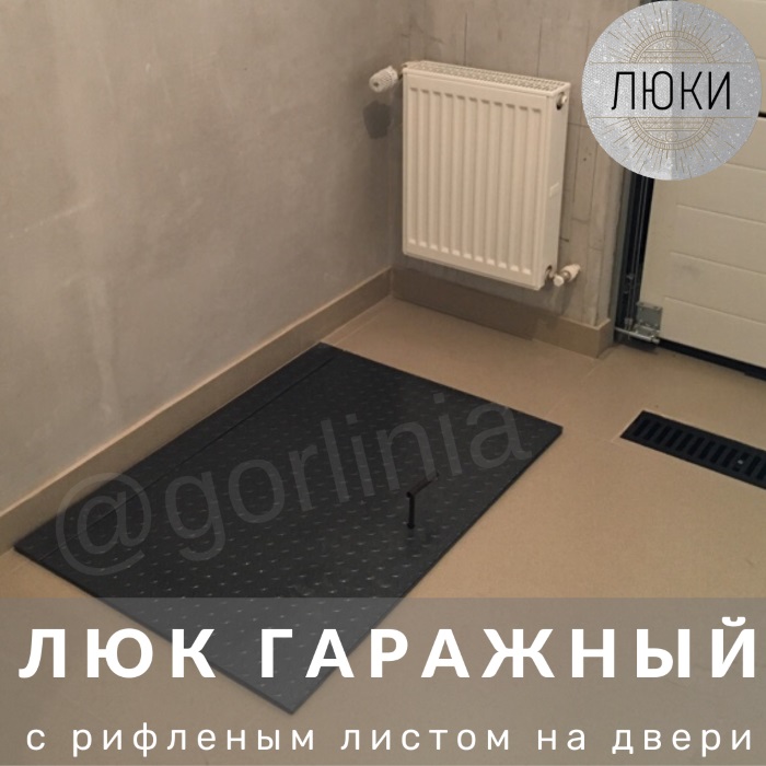 Основа напольного люка в гараже – это рама из сварного металлического уголка, в зависимости от предполагаемой нагрузки подбирается уголок 50х50 мм или 63х63 мм. Крышка – на ребра жесткости устанавливается рифленый металлический лист (чечевица), толщиной 3 мм.