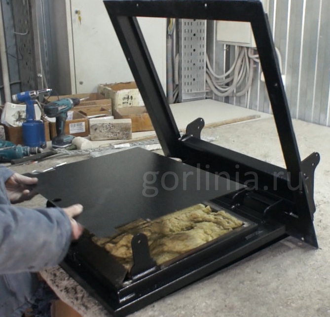 Люк выполнен в раме из уголка 50х50 мм. Установка производится методом погружения в напольный проем. Внешний габарит по раме: 690х790 мм.